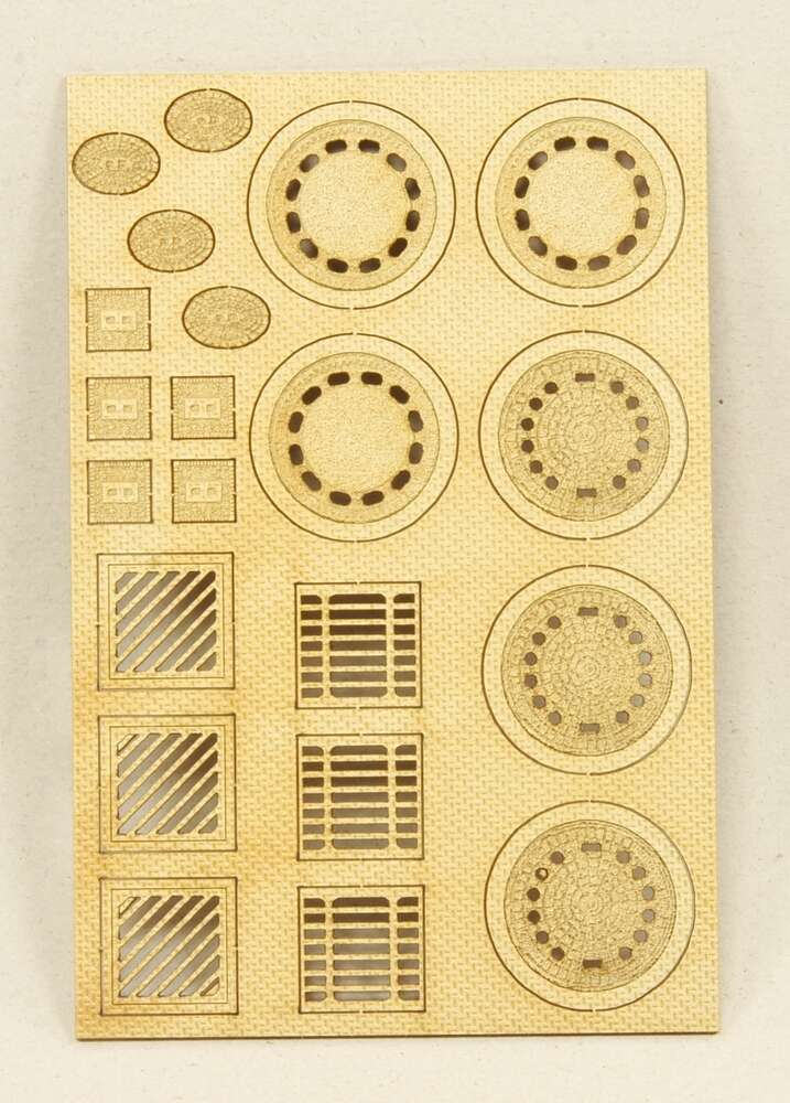 Diese sind fein detailliert und teilweise lasergraviert. Sie sind passend zu unseren Straßen und Gehwegen gefertigt.