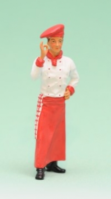 Koch mit roter Mütze und Schürze - Metall, handbemalt