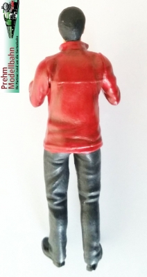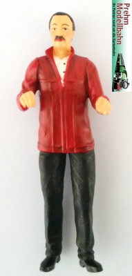 Triebwagenfahrer stehend - schwarze Hose, rote Jacke, weißes Hemd