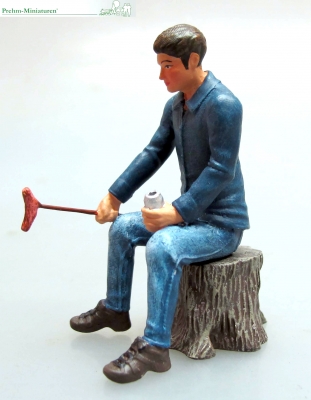 Art.-Nr. 500212 - Camper mit Bratwurst auf Baumstumpf sitzend