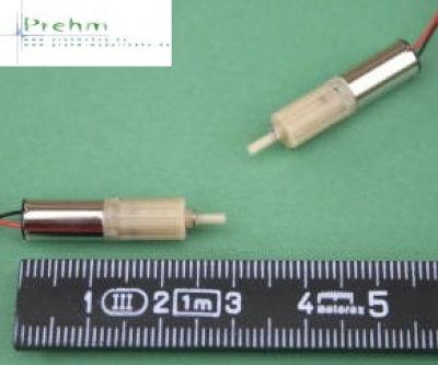 Micro-Getriebemotor (technische Daten: Maße: 6mm Æ x 24mm Länge, Gewicht 1,7 Gramm, Getriebewellendrehzahl 4-40 Upm, Glockenankermotor Maße: 6mm Æ x 12mm Länge, Betriebsspannung 0,5-3 Volt, Stromaufnahme 25-150 mA, Planetengetriebe mit Untersetzung 700:1, Maße: 6mm Æ x 12mm Länge, Getriebewelle 1,5 mm