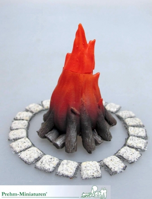 Was wäre ein Campingplatz ohne Lagerfeuer? Das in Kunststoff gefertigte Lagerfeuer ist einem echten Feuer nachempfunden, mit Holzscheiten und Steinumrandung. Das eigentliche Feuer ist transparent, so dass LED`s mit Brandflackerelektronik eingebaut werden können.