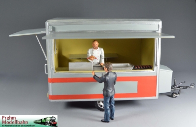 Das Standmodell ist nach dem Vorbild eines Grillwagens auf dem Bahnhofsvorplatz aus den 60ziger Jahren nachempfunden und passt herrlich in die Dampflokzeit. Das aus High-Grad-Resin gefertigte Modell ist fein detailliert und leicht gealtert, passend zu einer Dorfszene mit einer passenden Inneneinrichtung