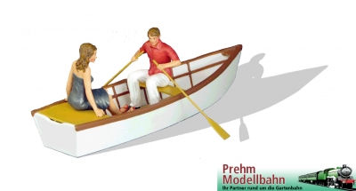 Das Ruderboot mit Liebespar ist ein echter Hingucker. Kunststoff, UV resistent bemalt, schwimmfähig und wetterfest.