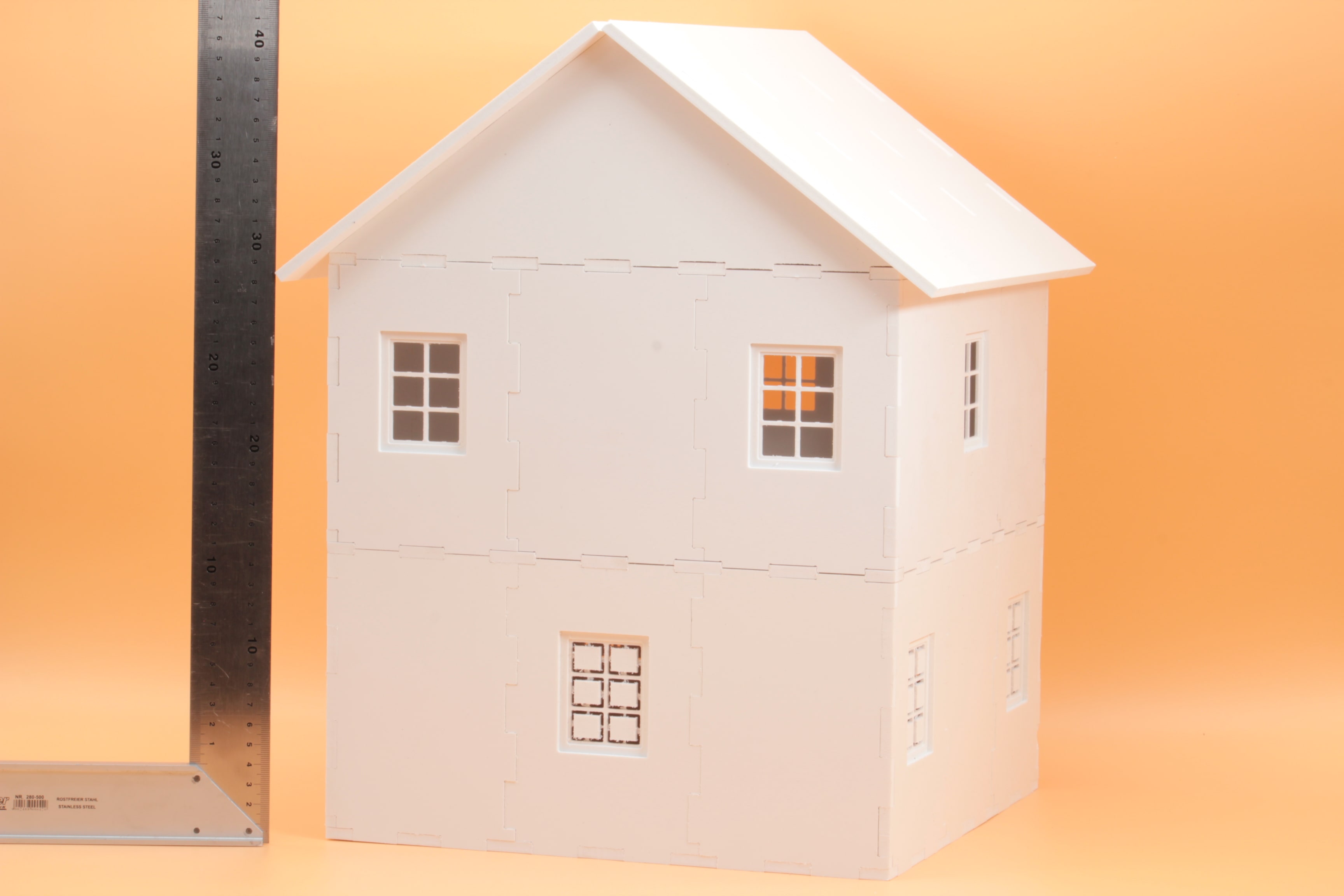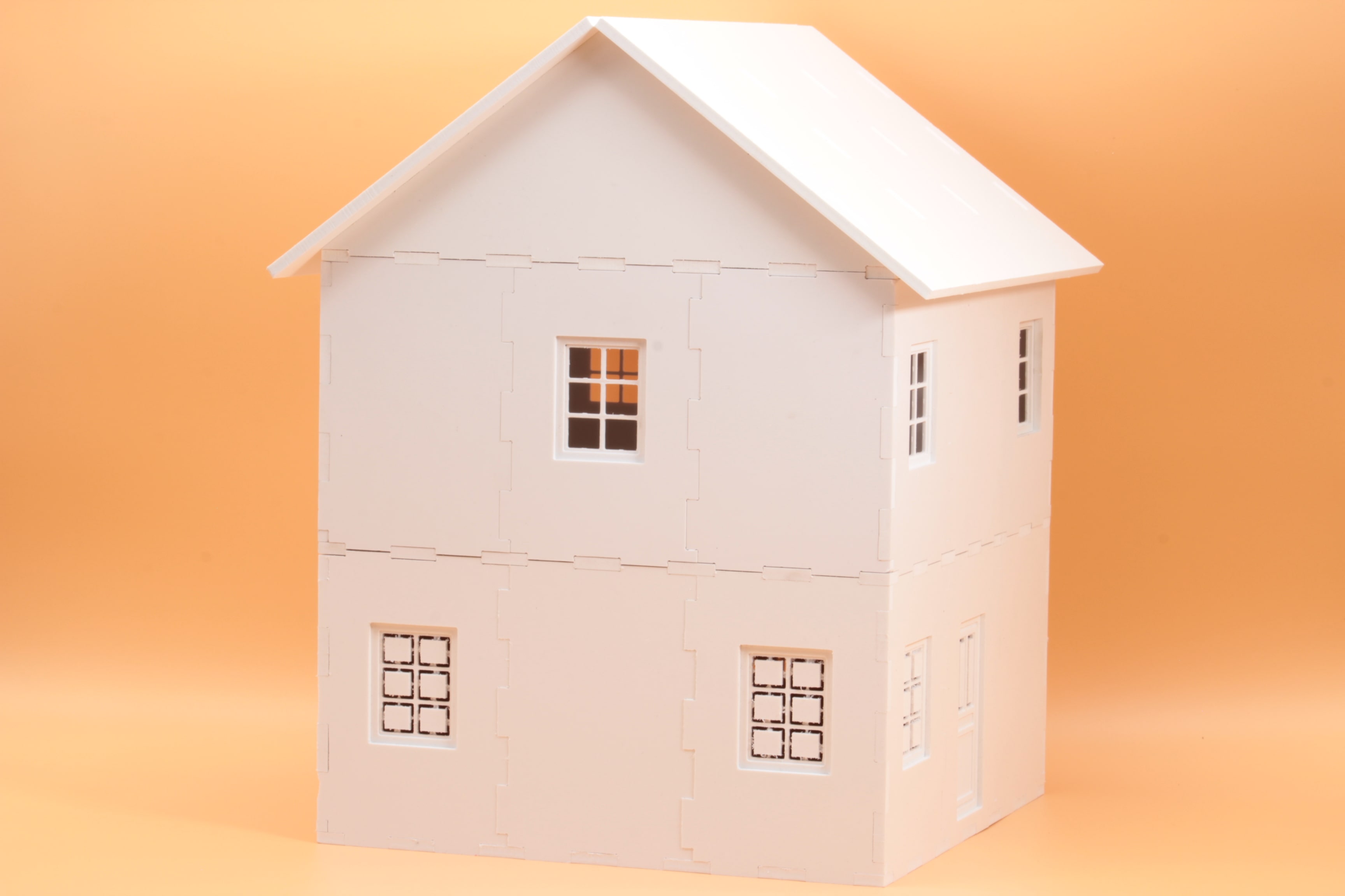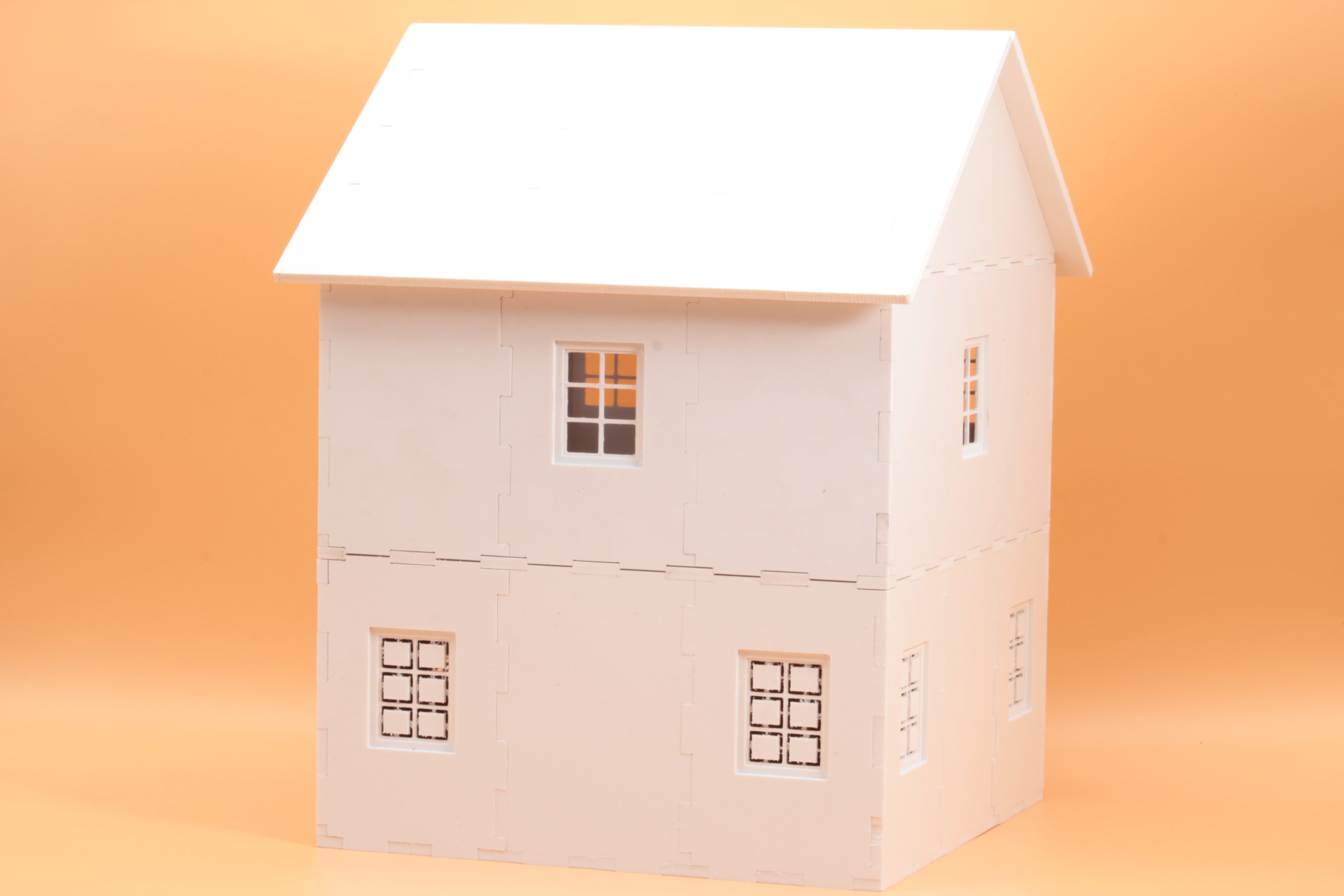 Der Bausatz ist aus 6 mm starkem Forex gefräst und durch die eingearbeitete Verzahnung, auch im nicht geklebten Zustand extrem stabil.